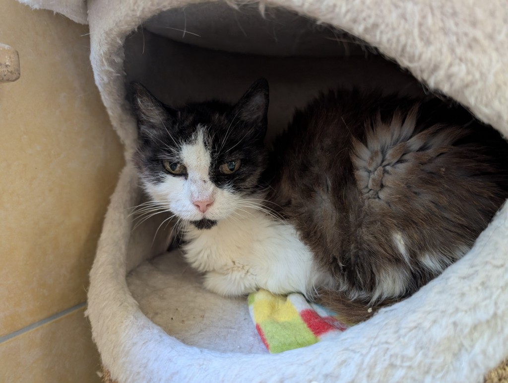 Abby kam verwahrlost mit schlechtem Allgemein- und Fellzustand ins Tierheim. Mittlerweile hat sich das deutlich gebessert. Abby ist nicht die große Schmusekatze, sondern eher zurückhaltend. Sie sucht ein ruhiges Zuhause, ohne viel Trubel, wo sie ihren Lebensabend genießen kann. Andere Katzen können vorhanden sein, müssen aber nicht. Abby benötigt Freigang.