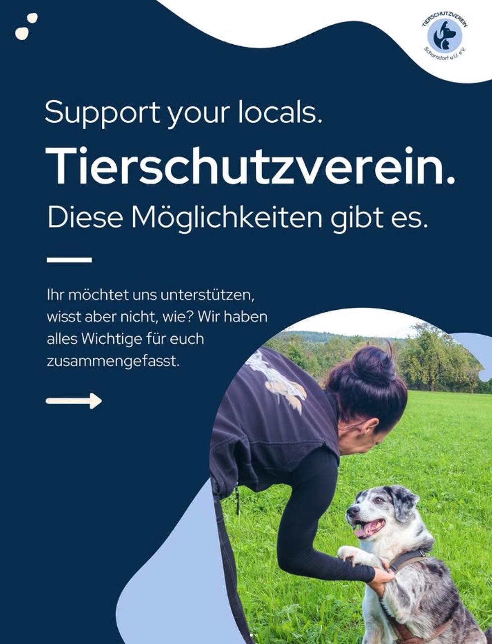 Es gibt viele Wege zu helfen: mit Spenden, Mitgliedschaft, Patenschaften oder ehrenamtlicher Unterstützung – z. B. bei der Tierpflege, im Büro, beim Gassigehen oder bei Instandhaltungsarbeiten. Jeder Beitrag zählt und macht einen Unterschied.